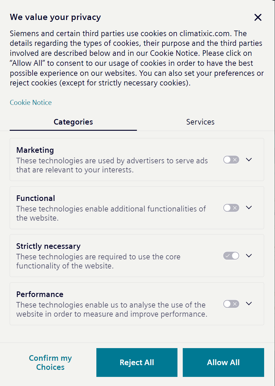- The Climatix IC landing page opens for registration and login. See 'Set up multi-factor authentication and first-time login'.