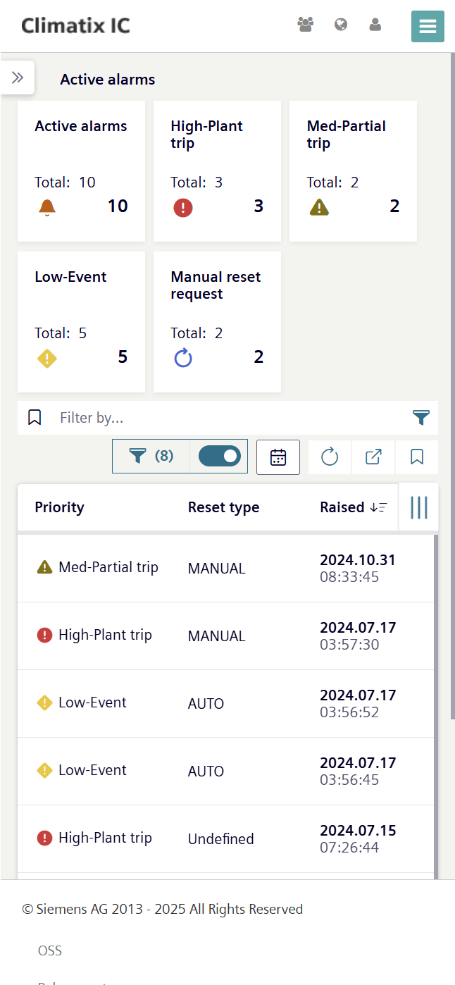 The Climatix IC default layout has a responsive design. It supports the display of Climatix IC, in addition to on a PC, on various mobile end devices, such as a mobile phone or tablets from various manufacturers and device sizes.