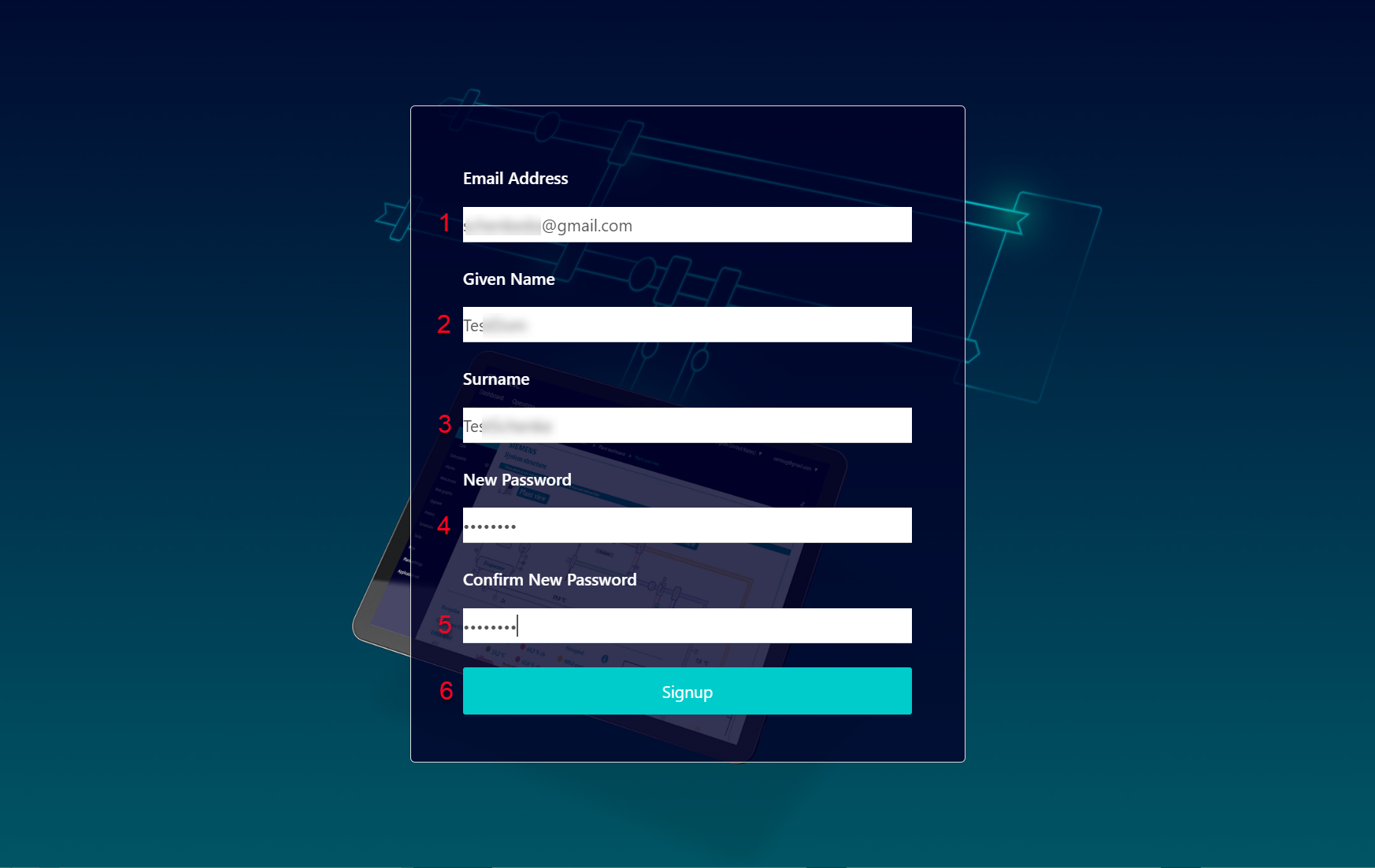 - Entering a weak password triggers a note and the registration procedure is blocked until the password meets the minimum security requirements.