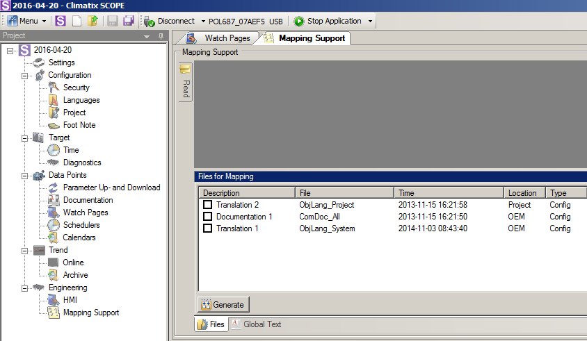 - In the SCOPE tool, go to the project tree "Engineering > Mapping Support".