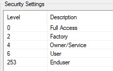 The SCOPE security levels for a SCOPE project are the starting point for access rights of a role to data points in a plant application. The security level is located in the SCOPE tool under "Configuration > Security". Additional information on the topic of "Configure security" is available in the SCOPE online help.
