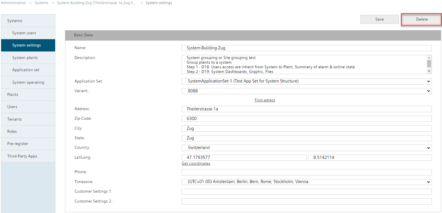 For details on deleting, for example, dealing with existing data: see "Delete systems".