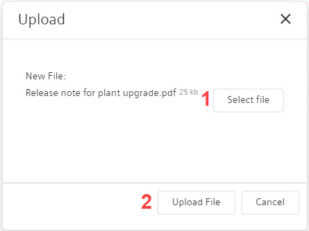 Tenant-administrators can provide their Tenant users with information on upgrades to their plants by loading PDF documents as cloud files to the system. The user can query the documents as "Release notes". The releases are highlighted in color based on the content: