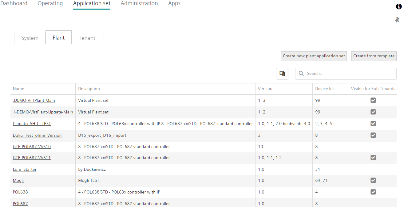 - Take over and adapt plant application sets for individual plants from an existing template.