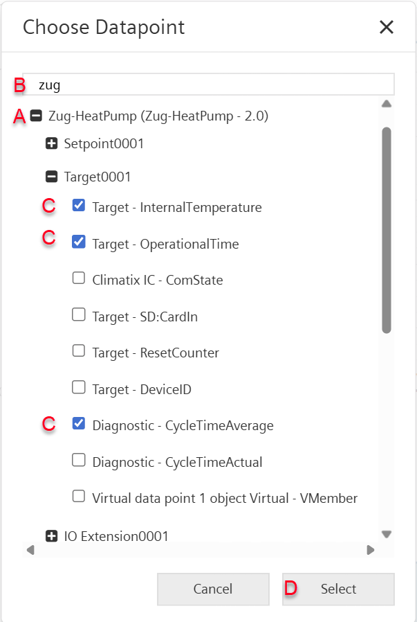 The data points for display in Trend Viewer can be selected in the plant or in Trend Viewer. Proceed as follows when selecting data points for display in Trend Viewer: